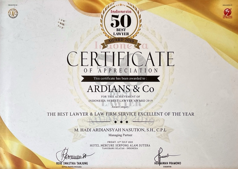 INDONESIA 50 BEST LAWYER AWARD 2019